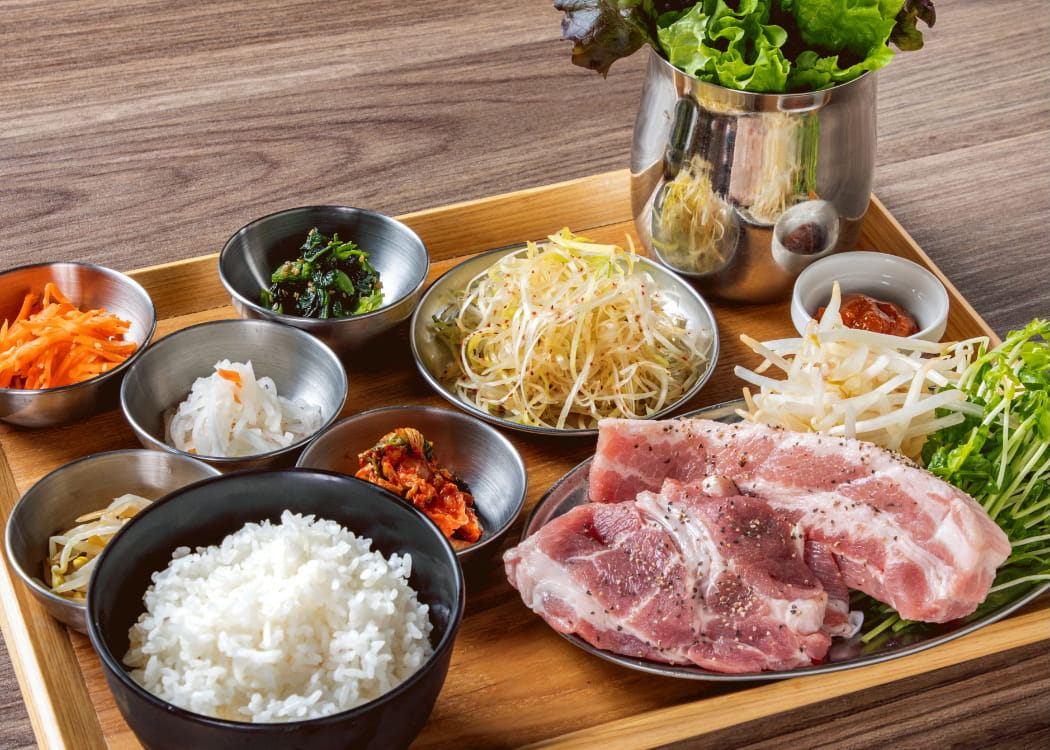チョンダのランチは、人気のメニューがセットでお得に楽しめます。巻き野菜のおかわり自由の「サムギョプサルセット」や「スンドゥブセット」など満足感たっぷりなメニューが勢揃い!その日の気分に合わせてお選びください。